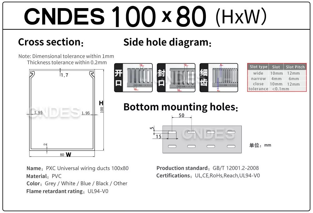 قناة أسلاك PVC مرنة مشقوقة 100×80 بعرض 100 مم وارتفاع 80 مم، تعتبر قناة الأسلاك هذه مثالية لما يلي: