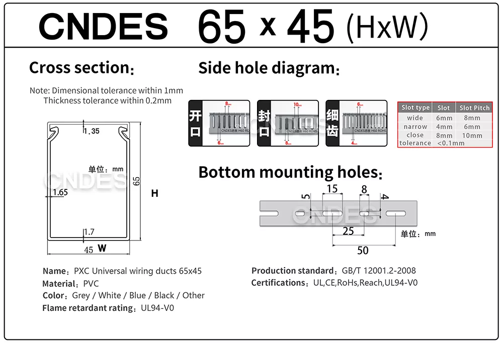 إذا كنت تحصل على قنوات أسلاك PVC مشقوقة باللون الرمادي مقاس 65 × 45 مخصصة من مصنع ومورد موثوق في الصين، فإن CNDES تقدم جودة متسقة وتخصيصًا مرنًا وخدمة احترافية.