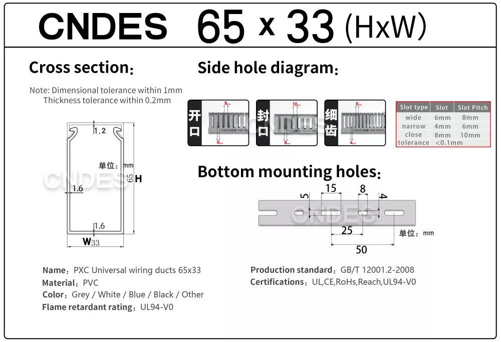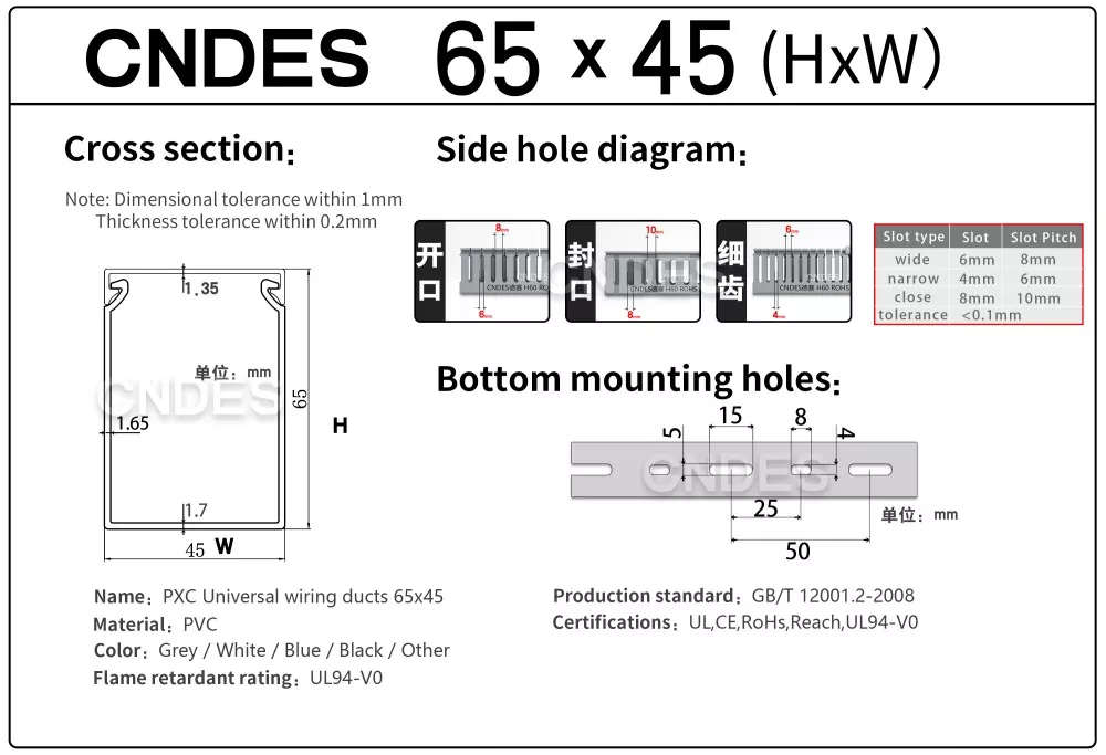 CNDES هو مصنع لمصدر مجاري أسلاك الكابلات البلاستيكية مع 24 عامًا من الخبرة. تعد قناة الأسلاك الصناعية PVC المخصصة بارتفاع 65 مم حلاً مثاليًا لتنظيم وحماية الأسلاك في البيئات عالية الكثافة مثل لوحات التحكم الصناعية ومعدات التشغيل الآلي ومنشآت الآلات. بارتفاع 65 ملم، يوفر مساحة واسعة لاستيعاب حزم الكابلات الأكبر حجمًا مع ضمان الحماية المثالية من العوامل البيئية مثل الغبار والرطوبة والأضرار الميكانيكية.