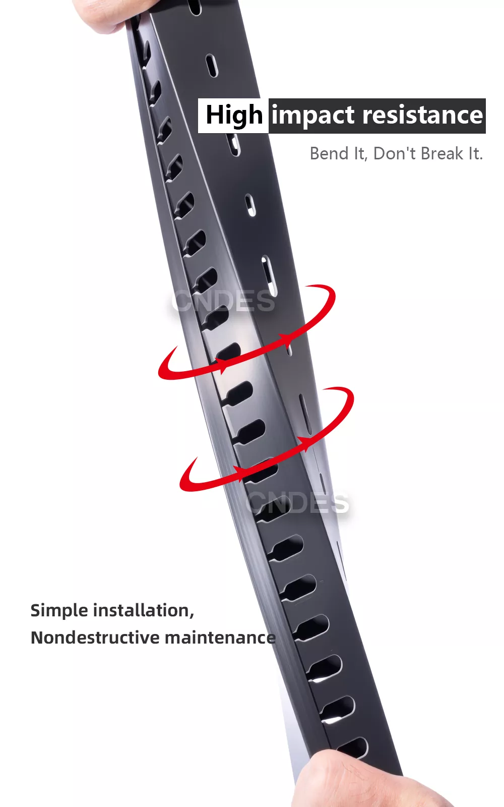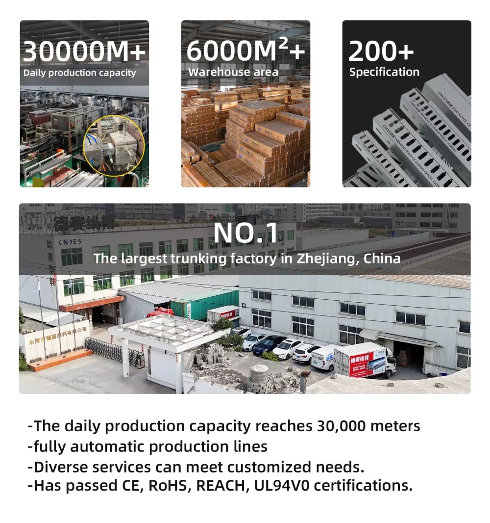 CNDES، باعتبارها مصنعًا محترفًا للبحث والتطوير وتصنيع قنوات الأسلاك البلاستيكية ذات الشقوق السوداء في الصين، متخصصة في الإنتاج الضخم ومراقبة الجودة الصارمة ISO وخدمة OEM/ODM. تُستخدم الأغلفة السوداء بشكل شائع في السيناريوهات التي تتطلب أسلاك مخفية (مثل المسارح المنزلية أو المكاتب) أو للتمييز بين الدوائر الوظيفية المختلفة (على سبيل المثال، خطوط الجهد العالي والجهد المنخفض)، وبالتالي تعزيز كفاءة الإدارة.